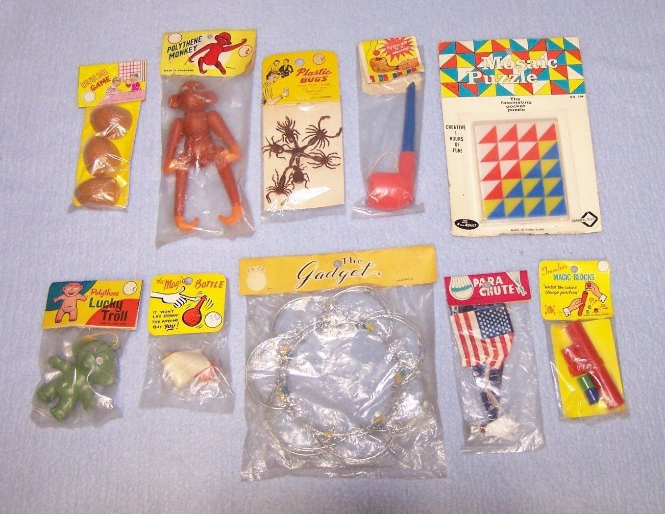 LOT OF 10 DIME STORE TOYS - NOS - 1950, 60
