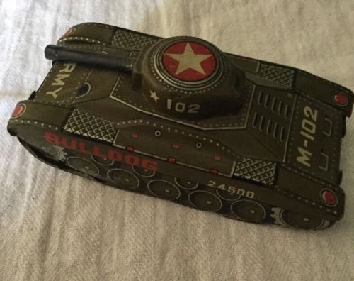 Vintage Tin Litho Army Tank M-102. BULLDOG Made In Japan