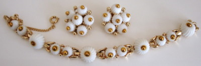 MARBOUX (Boucher) Milk Glass Chrysanthemum Bracelet Set