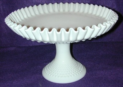 Fenton Milk Glass Hobnail Crimped Edge Pedestal Bowl