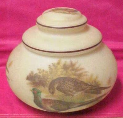 Vintage Tobacco Jar w/Pheasants Milk Glass w/Satin WOW