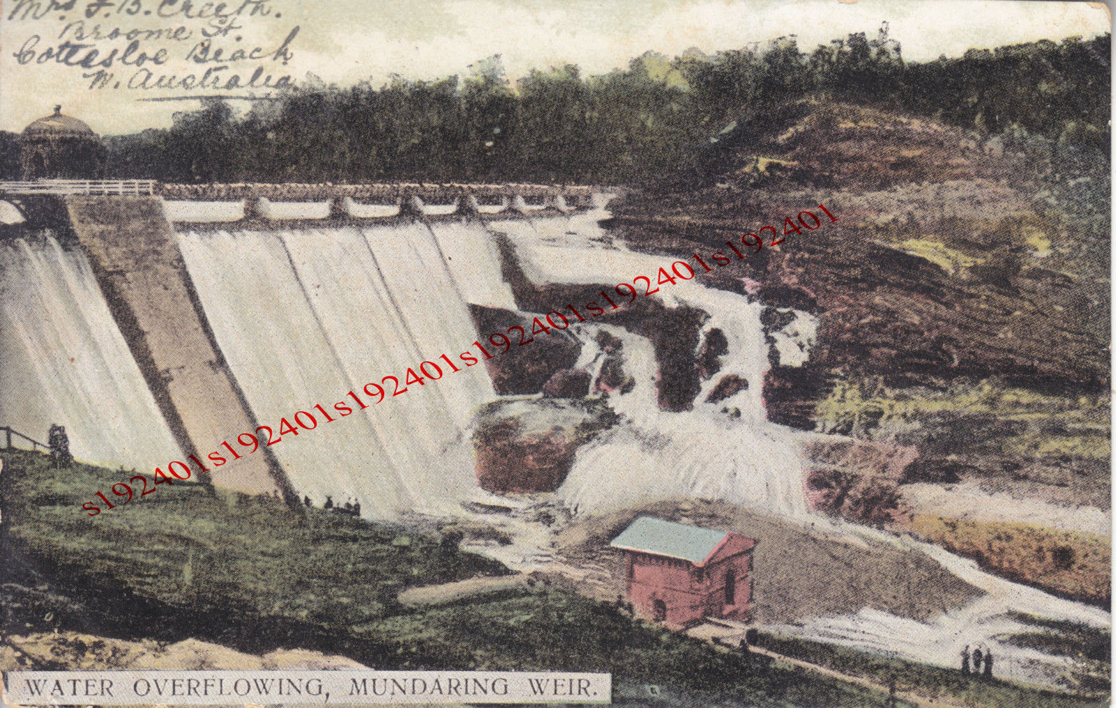 Title (ebay affiliate link): WESTERN AUSTRALIA -MUNDARING WEIR, WATER OVERFLOWING-WA- SHIPPED TO MALTA -1907
