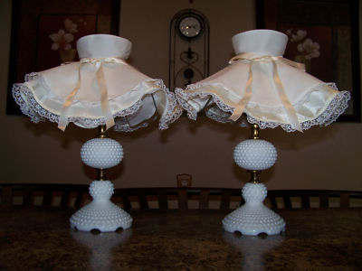 VINTAGE FENTON MILK GLASS HOBNAIL TABLE LAMPS
