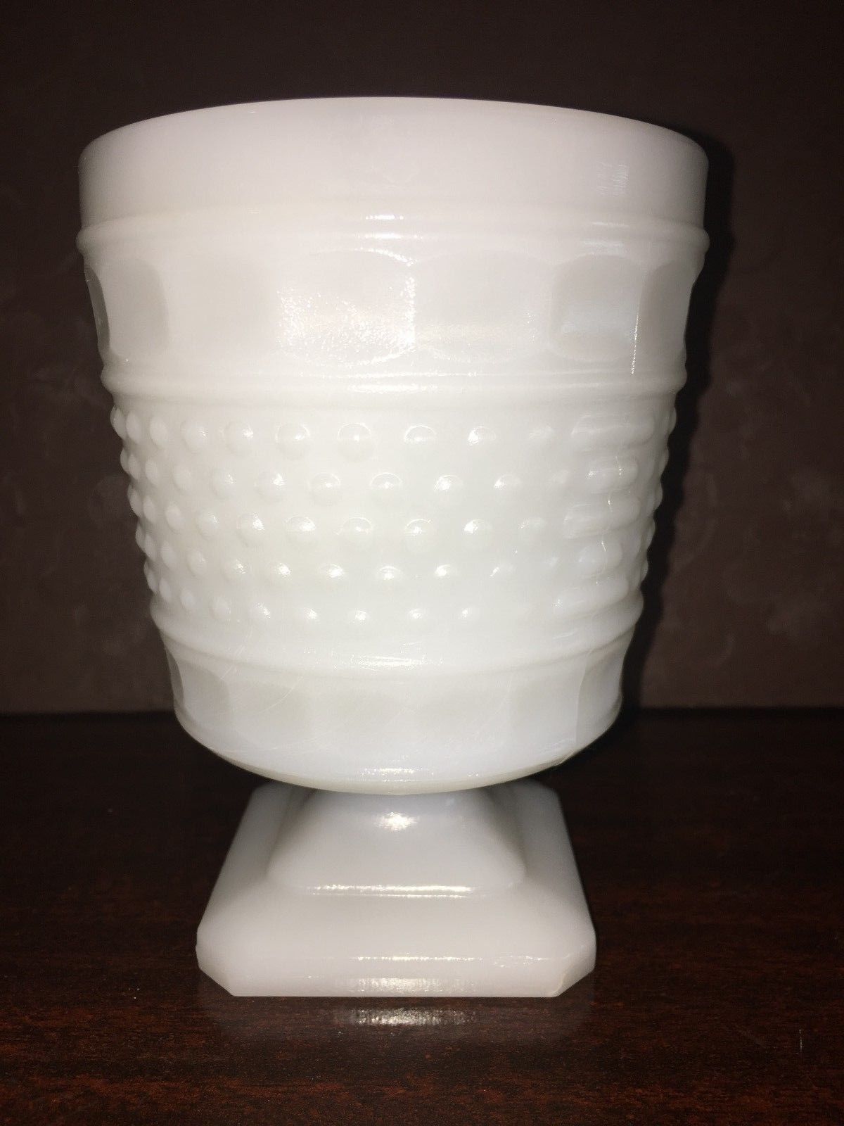 Vintage Milk Glass Pedestal Hobnail Vase Compote Server
