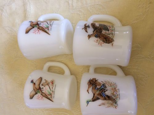 Title (ebay affiliate link): Vintage set of Milk Glass Fire King Coffee Cups featuring Game Birds