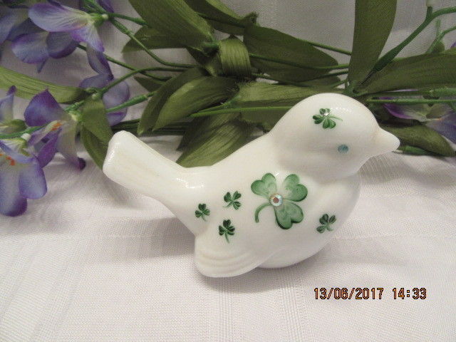 Title (ebay affiliate link): FENTON ART GLASS 2005 IRISH TREASURES MILK GLASS BIRD WITH HP SHAMROCKS MIB