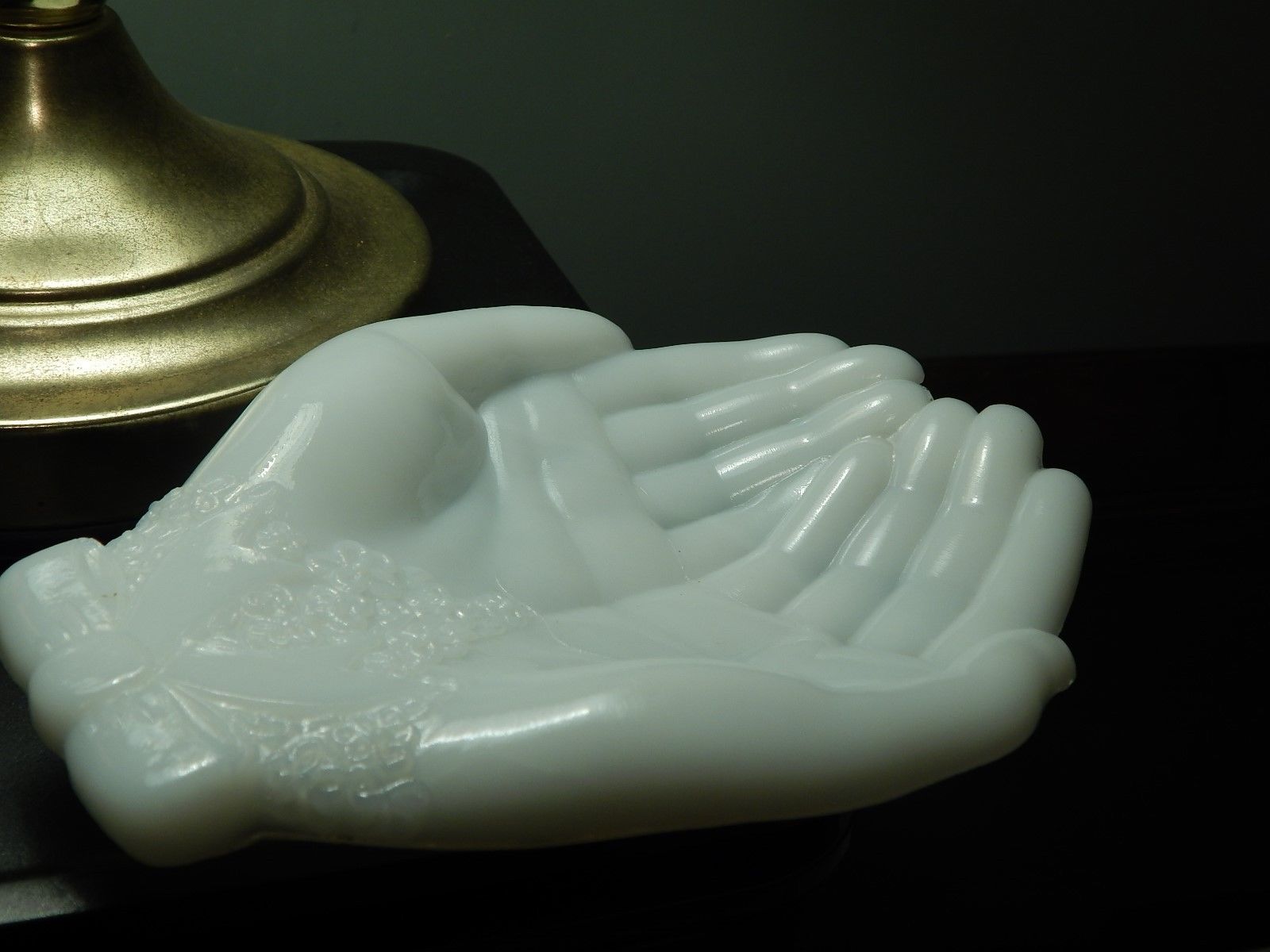 Title (ebay affiliate link): AVON Milk Glass Open Welcoming Hands (Trinket Dish Tray) Ltd_Vtg ~ Mexico ~