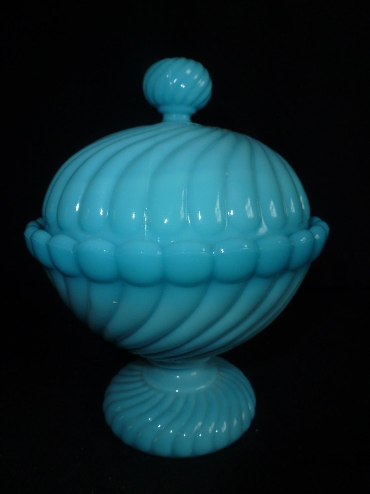 LARGE BLUE MILK GLASS OPALINE BOWL WITH LID