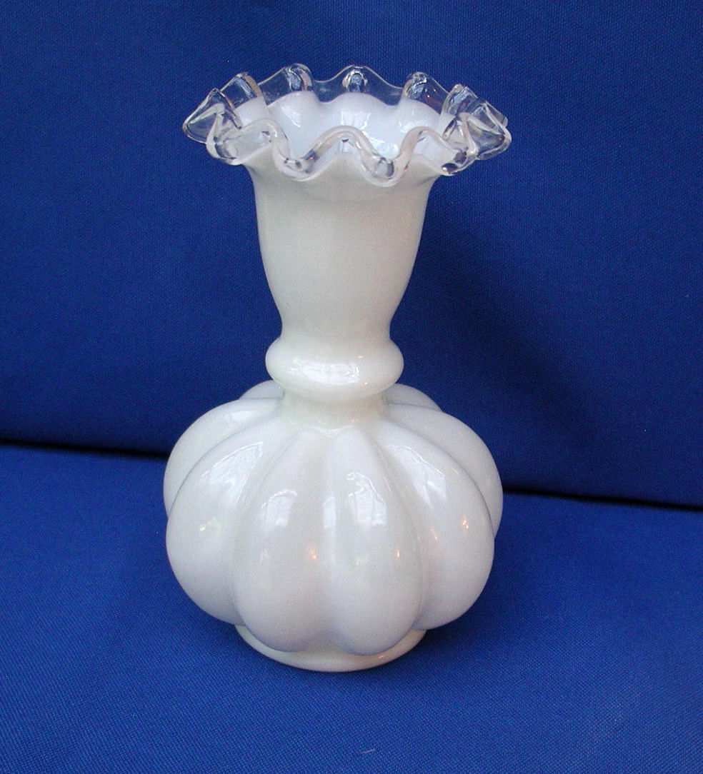 Title (ebay affiliate link): 5.5" tall Melon Ruffled bud Vase white Fenton Silver crest milk Glass VTG Rare
