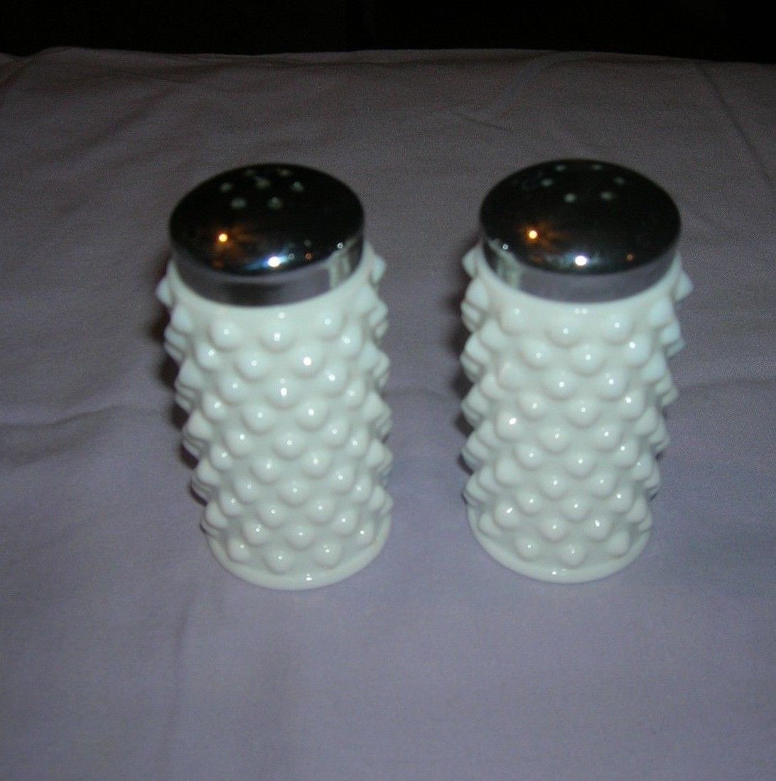 VINTAGE,FENTON,HOBNAIL,WHITE,MILK GLASS,SALT AND PEPPER SHAKERS,SET,RETRO,NR