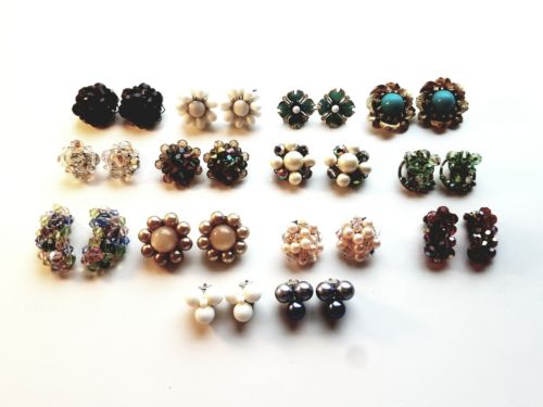 Title (ebay affiliate link): Vintage lot of 14 pairs of Cluster Earrings, Crystal, Beads, Milk Glass