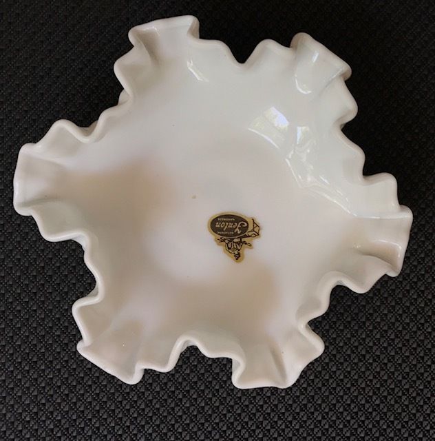 Title (ebay affiliate link): Fenton Milk Glass Hobnail 6" Dresser Dish Handmade with Gold Foil Sticker Bowl