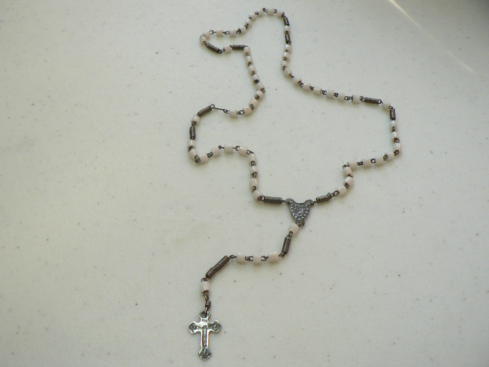 A PETITE PRE-OWNED/VINTAGE MILK GLASS BEAD 5 DECADE CATHOLIC HOLY ROSARY