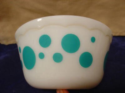 FEDERAL GLASS BLUE DOT NESTING/MIXING BOWL MILK GLASS