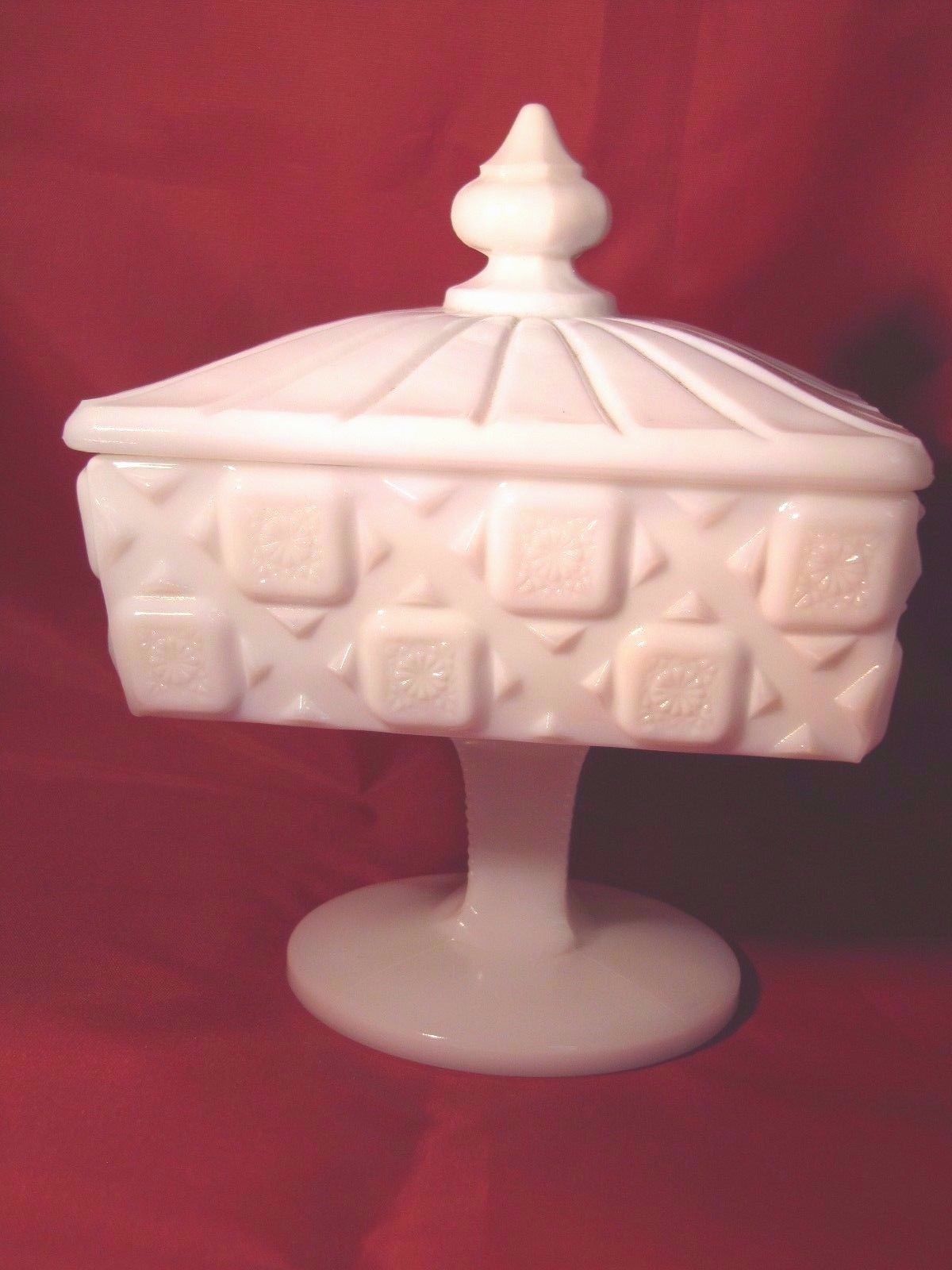 Title (ebay affiliate link): Vintage WESTMORELAND milk Glass Old Quilt Lidded Square CANDY DISH footed Retro