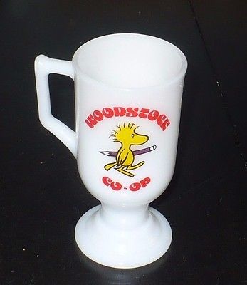 Title (ebay affiliate link): VINTAGE PEANUTS WOODSTOCK CO - OP MILK GLASS MUG, NO CHIPS OR SCRATCHES