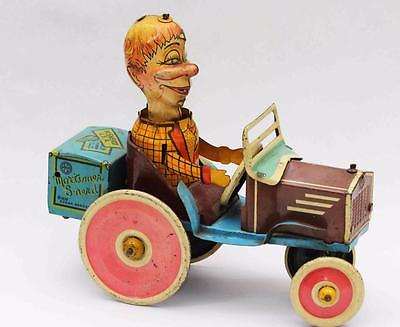 1939 antique Mortimer Snerd Tin Wind-Up Toy Car - Louis Marx & Charlie McCarthy