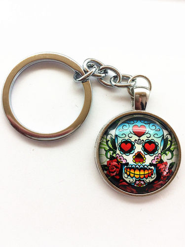 Title (ebay affiliate link): Vintage skull Keychain Cabochon Tibetan silver Glass Metal Key Ring