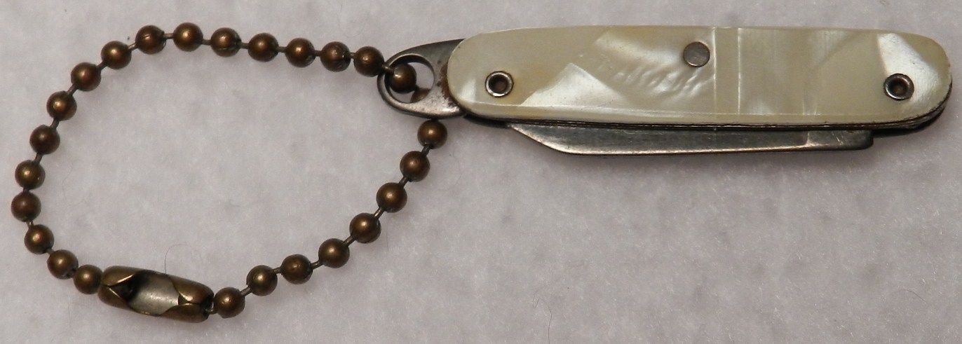 Title (ebay affiliate link): Vtg Miniature USA 1.5" Pocket Knife Folding Knife KEYCHAIN Mother of Pearl
