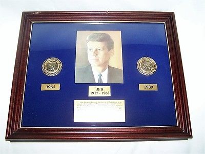 Title (ebay affiliate link): 1989 John F. Kennedy JFK Commemorative Coin Set 1964 Half Dollar Framed #0774