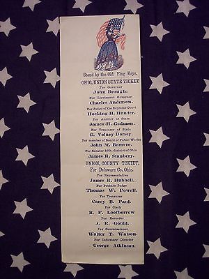 ORIGINAL 1863 OHIO GOVERNOR ELECTION UNION TICKET CIVIL WAR GOV. BROUGH