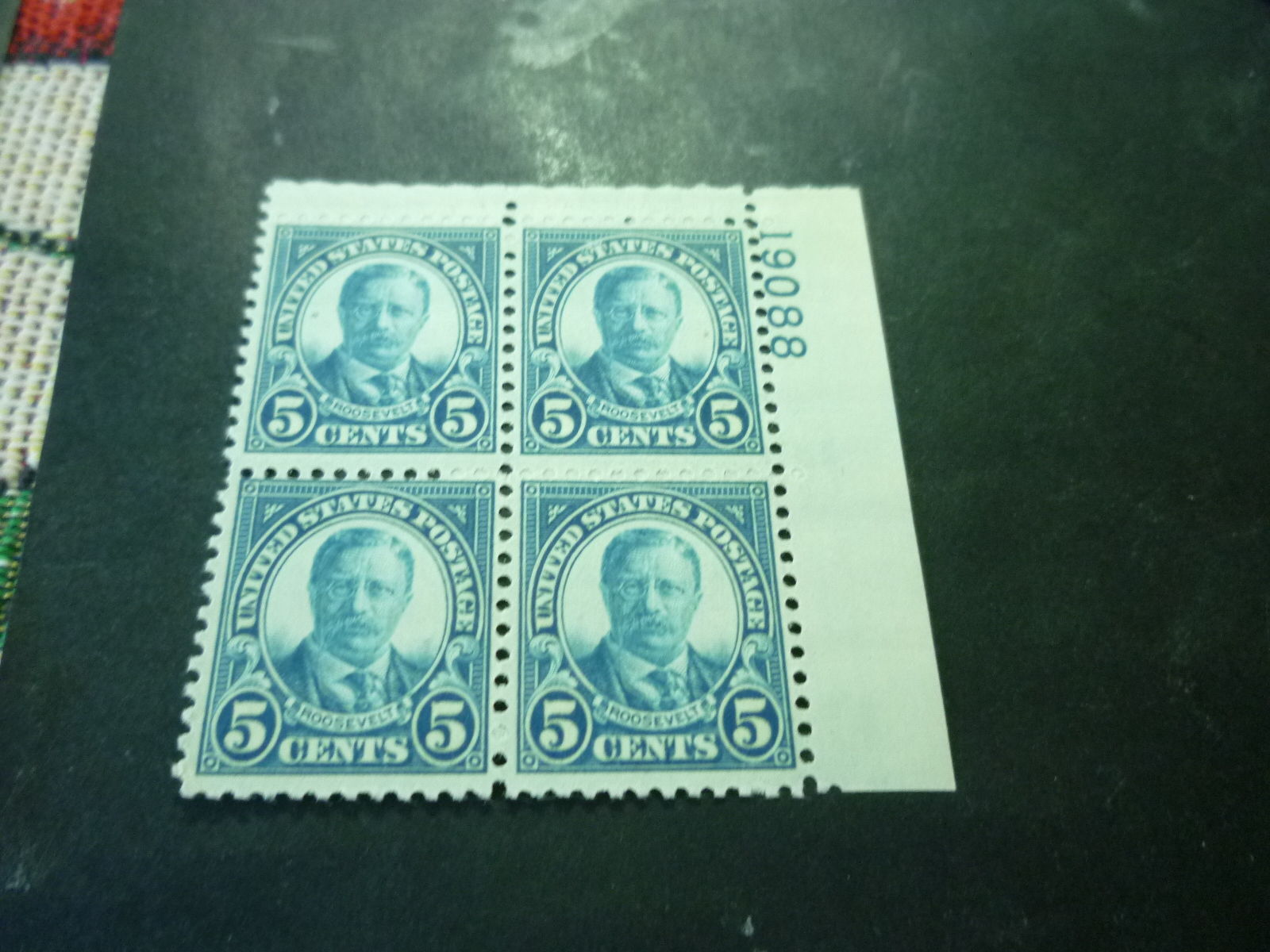 1927 MNH TEDDY ROOSEVELT PLATE BLOCK OF 4 STAMPS SC # 637 CV $ 19.00 NICE