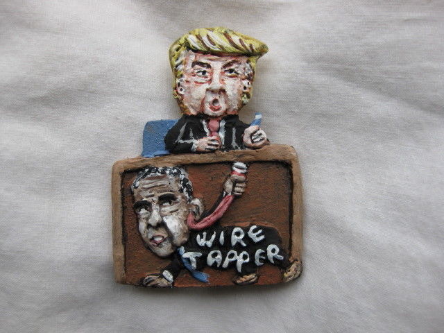 Title (ebay affiliate link): Donald Trump Wire Tapped by Obama 2017 Novelty Political Pin