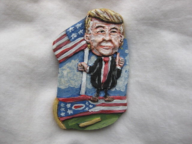 Title (ebay affiliate link): President Donald Trump standing on Obama Flag Novelty Poltical Pin