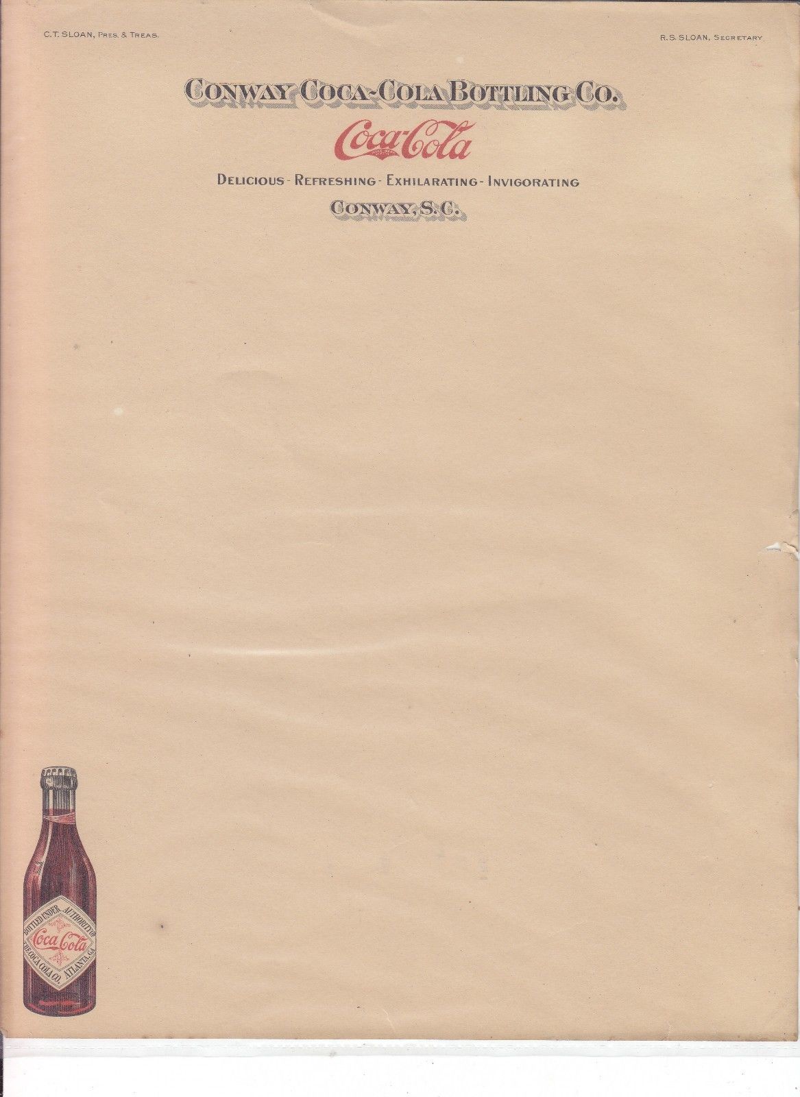 CONWAY COCA-COLA BOTTLING CO. CONWAY S.C. STRAIGHT SIDE BOTTLE 1904 - 1919