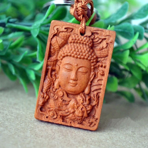 Title (ebay affiliate link): Buddha Kwan Yin Dragon Rose Wood Carving Chinese Pendant Key Chain Keyring Craft