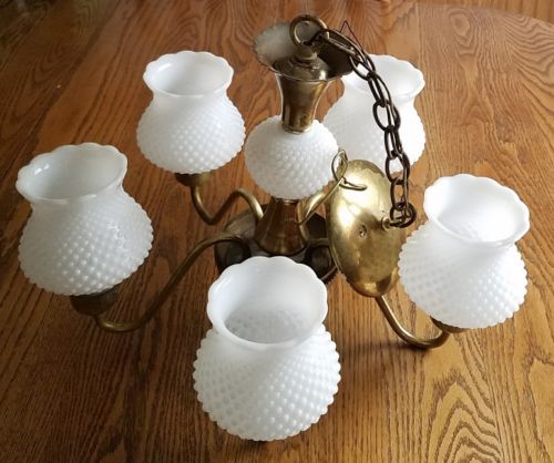 Title (ebay affiliate link): Vintage Hobnail Milk Glass Five Arm Hanging Ceiling Chandelier Light Fixture
