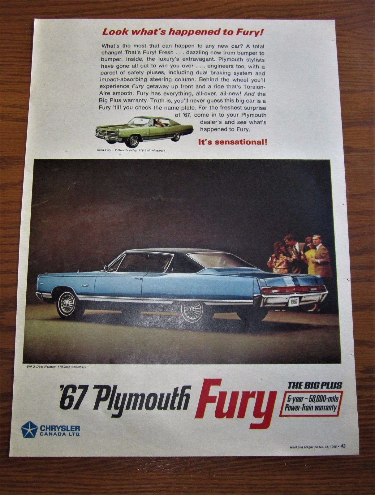 STUNNING 1967 CANADIAN CAR AD DODGE PLYMOUTH VIP 2 DOOR FURY SPORT FURY