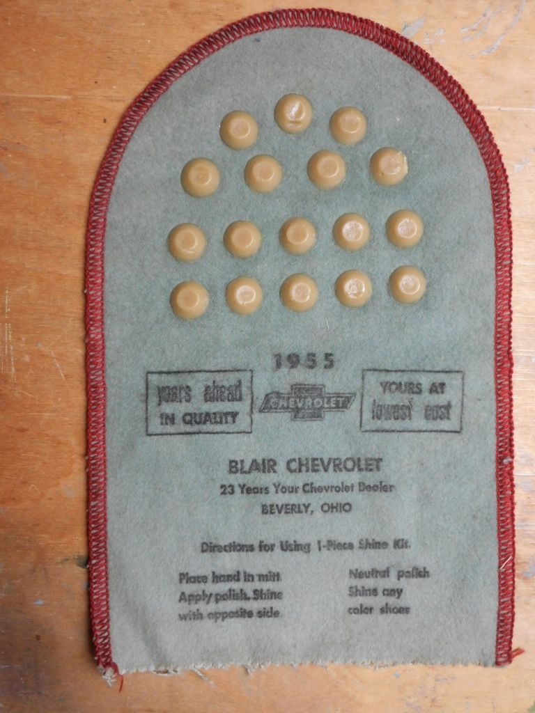 Title (ebay affiliate link): Rare 1955 Chevrolet Dealer Promo 1 Pc. Shine Kit Mitt Blair Chevrolet Beverly OH