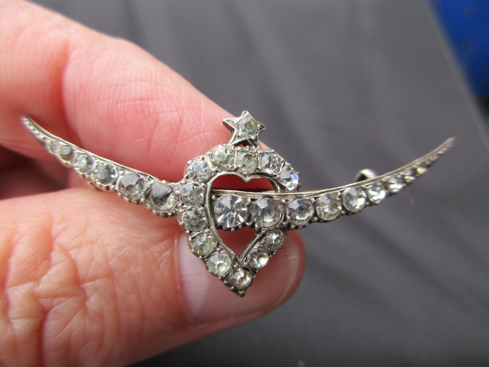 Title (ebay affiliate link): ANTIQUE VINTAGE VICTORIAN EDWARDIAN SILVER CRYSTAL MOON HEART ART NOUVEAU BROOCH