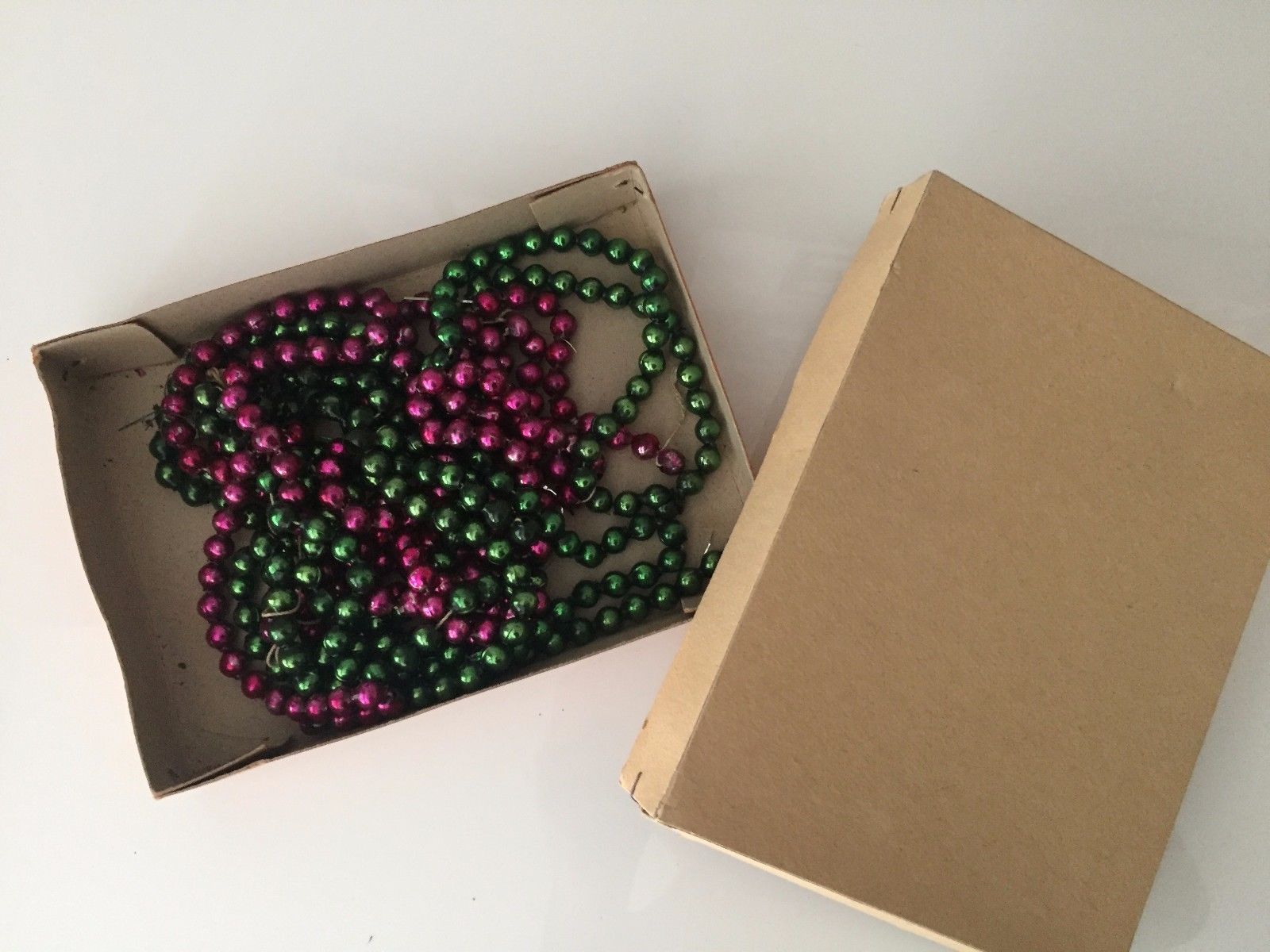 Title (ebay affiliate link): Vintage boxed Christmas glass beaded pearls garland pink and green - W Germany