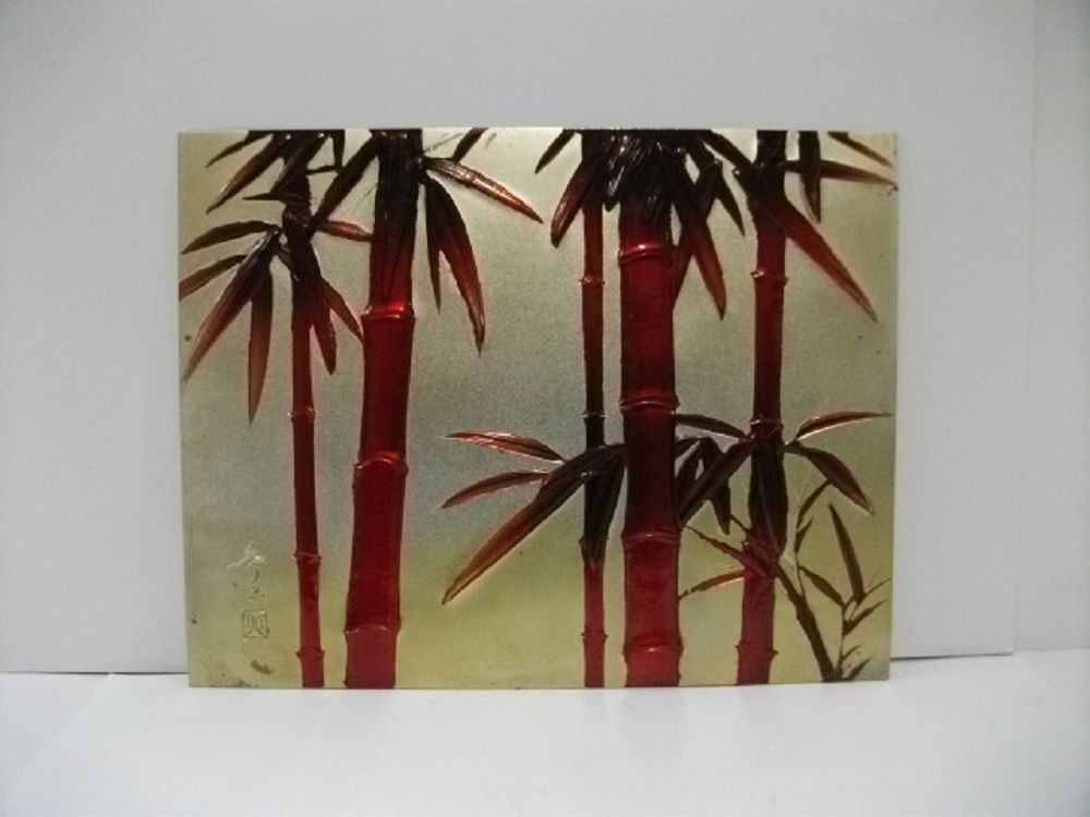 Pure gold, pure silver, a metal engraving product. Red bamboo. HIDEMASA''s work