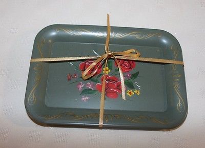 Lot-4 vintage tole tip trays-green w/ florals-exc. cond!