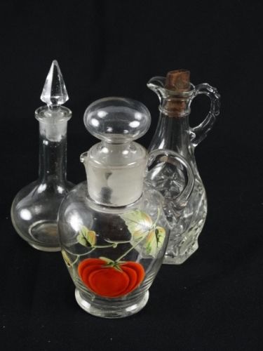 Title (ebay affiliate link): 3 Antique Glass Serving Items Jugs Sauce inc 19thC hand Painted Tomato Juice