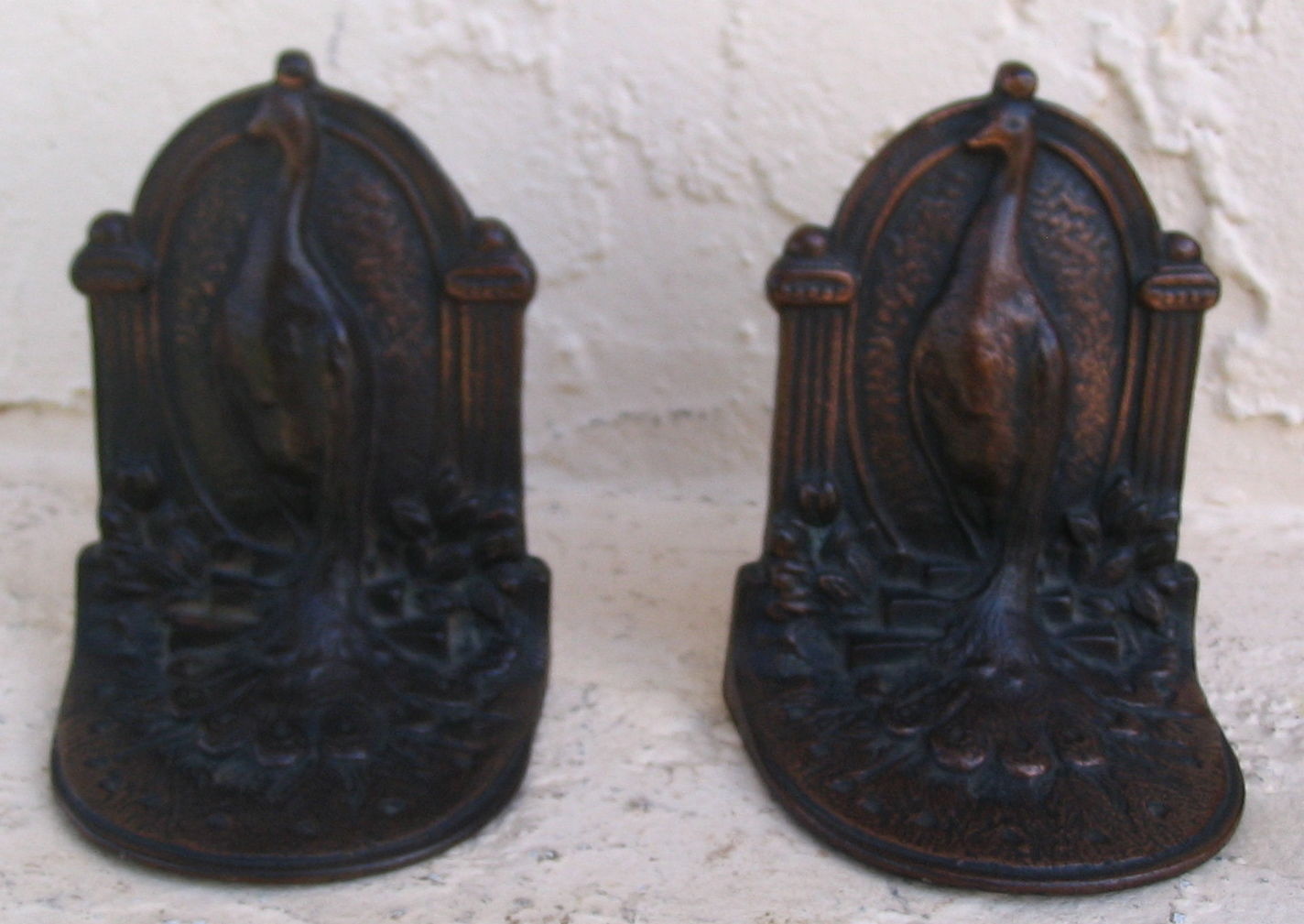 Antique Pair Bronze Look Cast Iron PEACOCK Bookends Book Ends