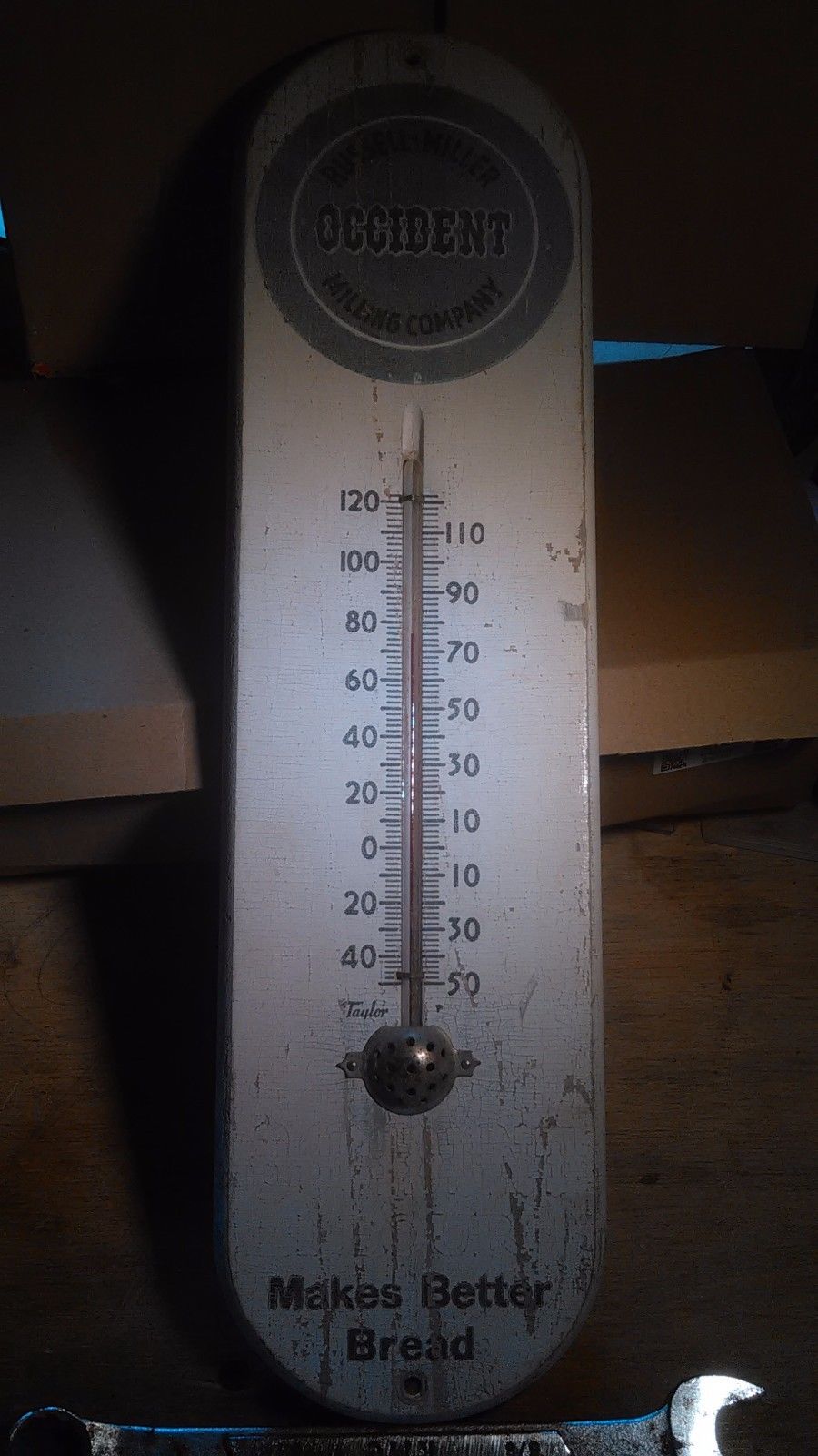 Antique old vintage Occident flour bread rare thermometer Taylor wooden nice