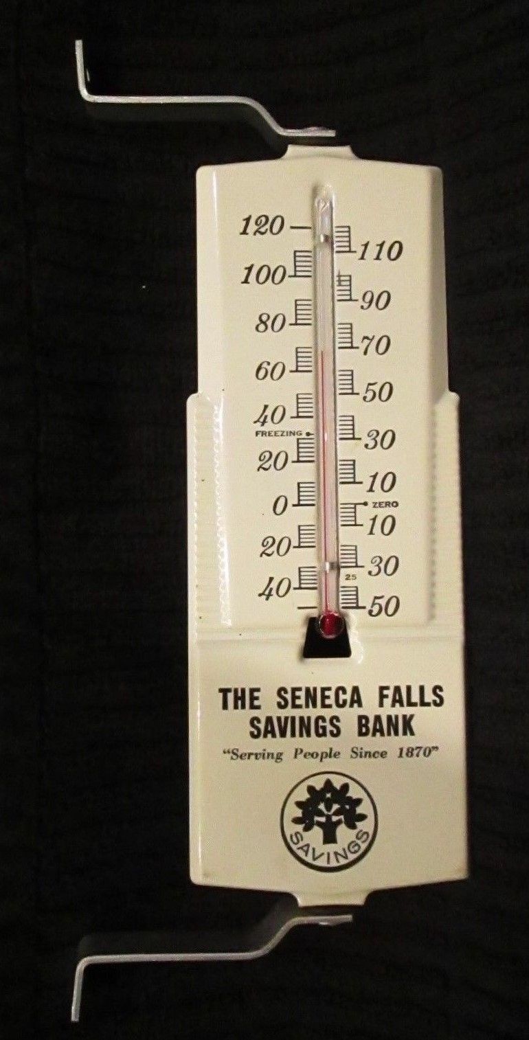Title (ebay affiliate link): Vintage Advertising, Thermometer. Seneca Falls Savings Bank. Porcelain Enamel