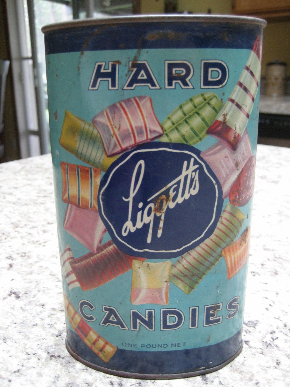 Title (ebay affiliate link): Vintage Liggett''s Hard Candies Tin ( Primitive/ Advertising Kitchen Decor)