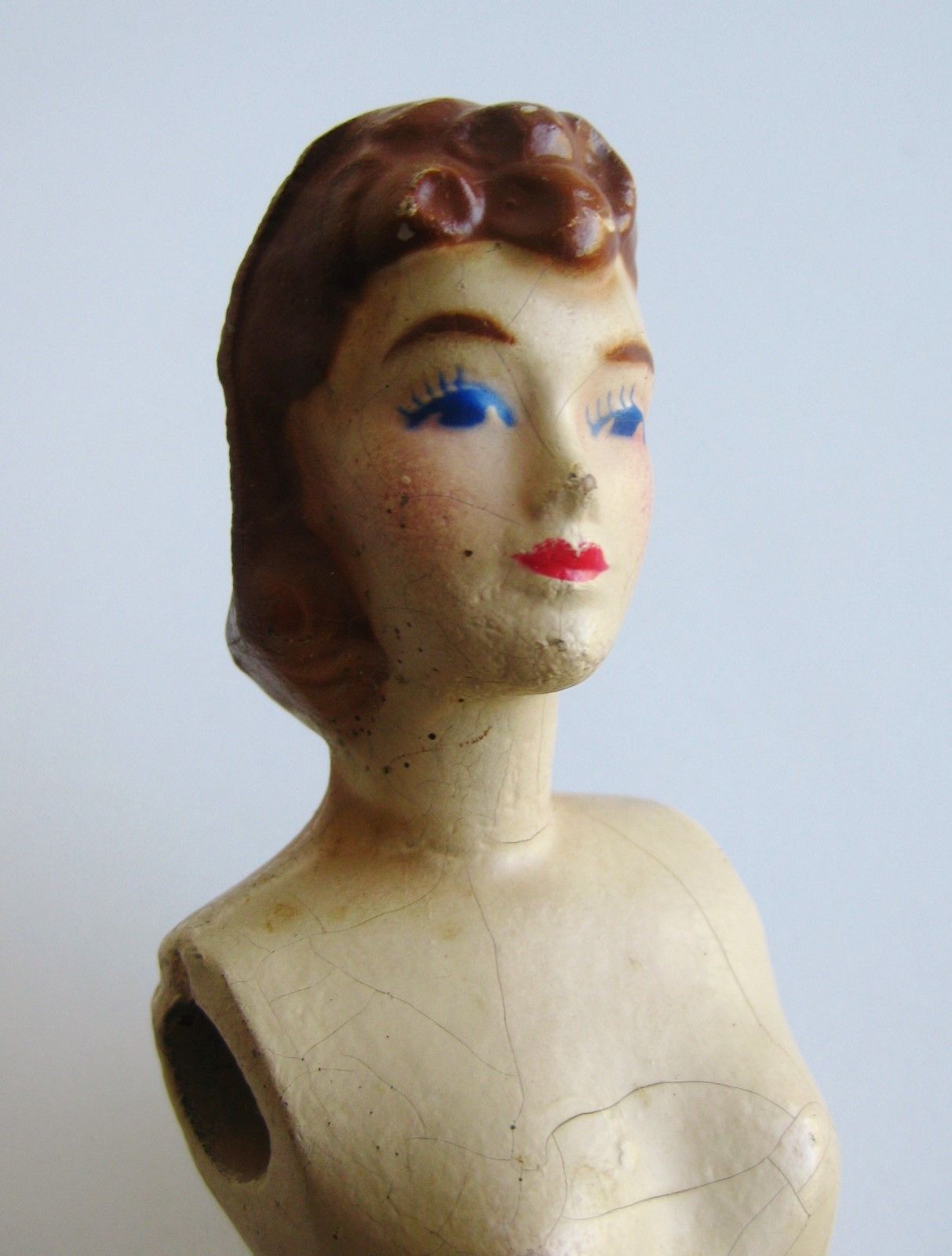 Vtg 40s Composition Doll Mannequin Sewing Pattern Countertop Store Display Toy