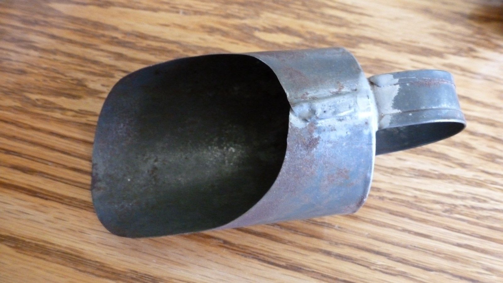 Title (ebay affiliate link): Antique Vintage Primitive Tin Small Scoop Handmade Five Inches Flour Pantry