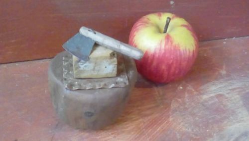 Title (ebay affiliate link): OLD AAFA CHILDS FOLK ART CHOPPING BLOCK WITH CLEAVER-BEAUTIFUL-INITIALS ON IT!