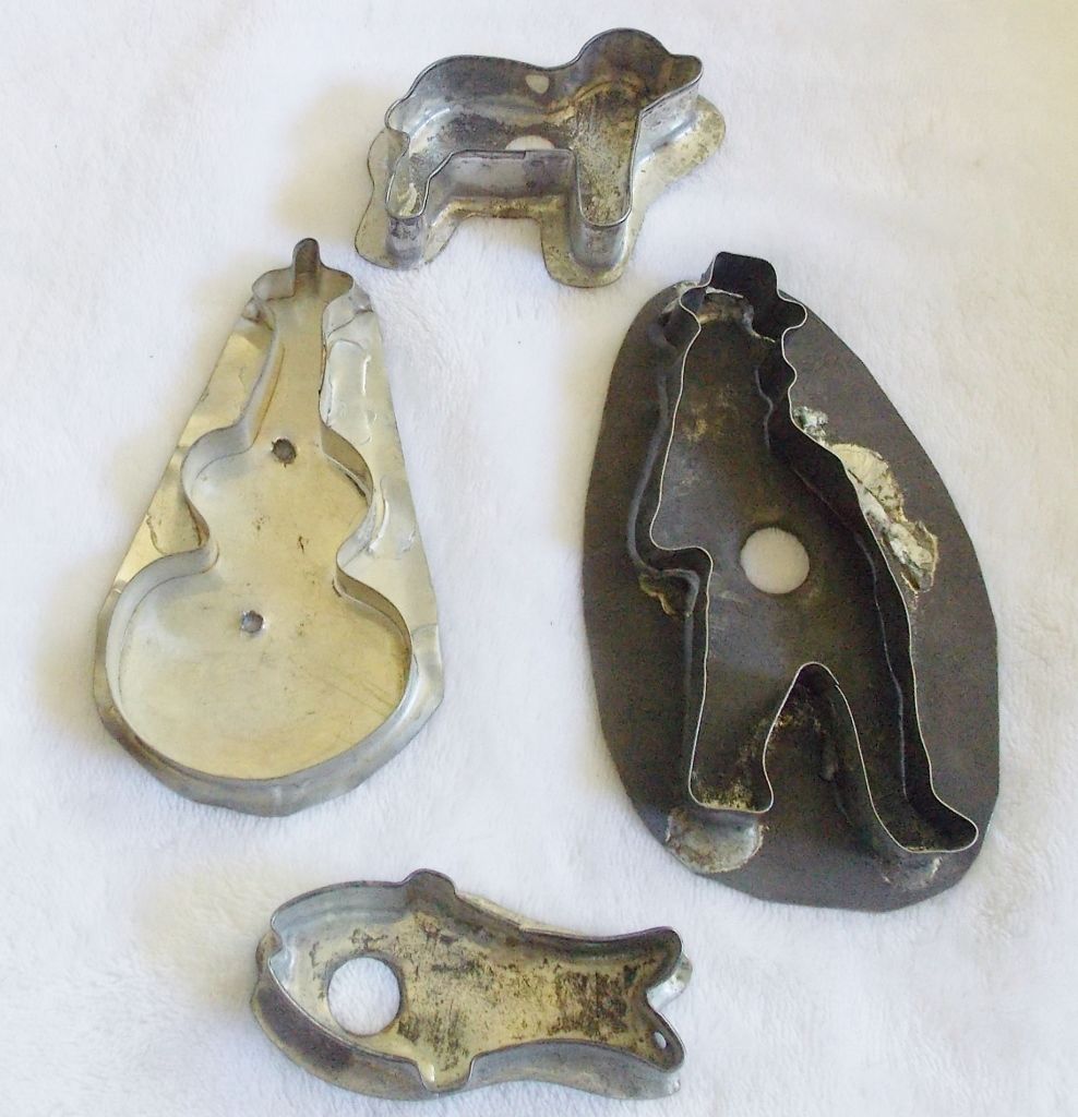 Title (ebay affiliate link): LOT OF 4 VINTAGE PRIMITIVE PA. FOLK ART FLAT BACK COOKIE CUTTERS INC. MAN, DOG+