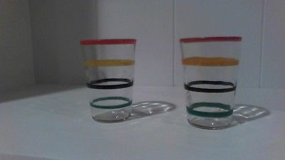 2 Vintage Glasses Banded Rings Striped Juiice Glasses