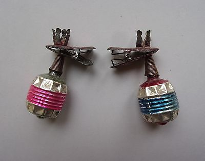 LOT OF 2 ANTIQUE CLIP ON CHRISTMAS CANDLE HOLDERS with BLOWN GLASS CONES
