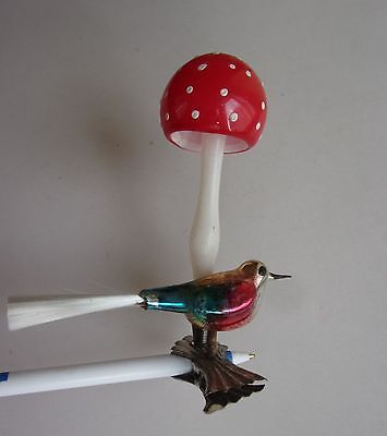 VINTAGE CLIP ON BLOWN GLASS BIRD & MUSHROOMS Christmas Ornaments