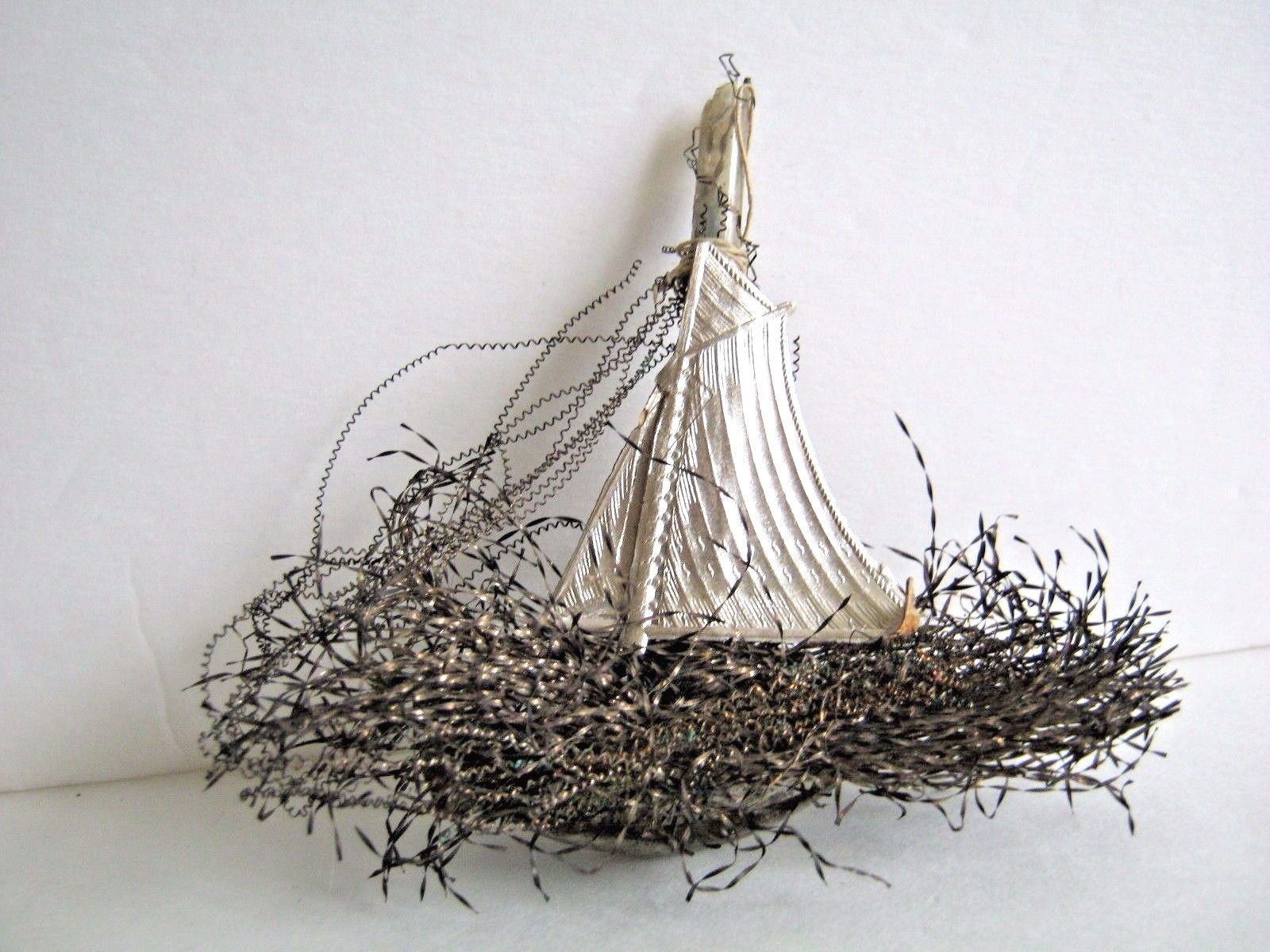 Title (ebay affiliate link): ANTIQUE CHRISTMAS ORNAMENT, SEBNITZ, SAILBOAT, MARKED GERMANY